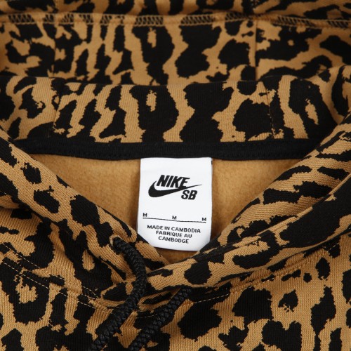 The Nike SB Fleece Animal Hoodie features an all-over animal print with a drawstring hood and a large hand pocket on the front. White Nike swoosh on the left chest . Perfect fit with long raglan sleeves . Designed for skateboarding, but also suitable for everyday wear. Material 83% cotton and 17% polyester.