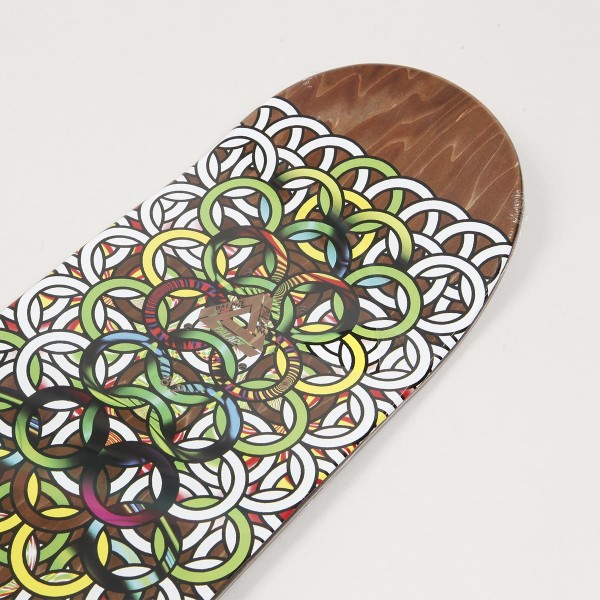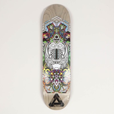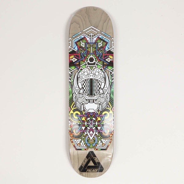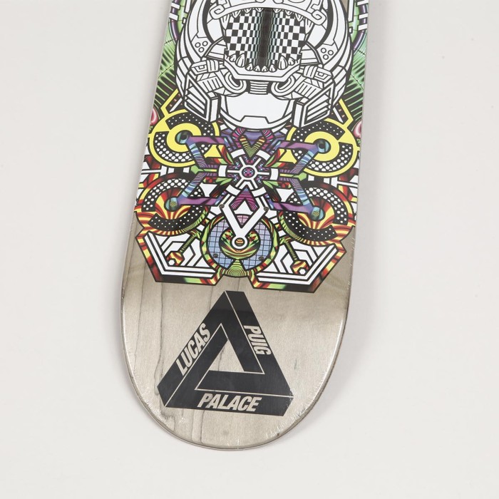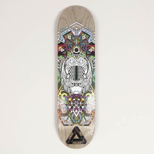 Skate board from the British brand Palace Skateboards, which is ridden by names like Fairfax, Brady, Todd, Puig and others. Pro model Lucas Puig Pro Mask Deck in size 8.25 inches with collage graphics with colorful mandala and mask. Palace logo on the heel . Free grip with every board.