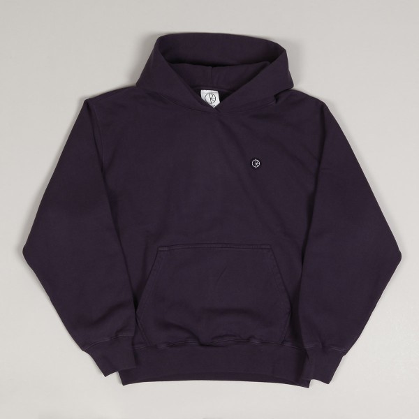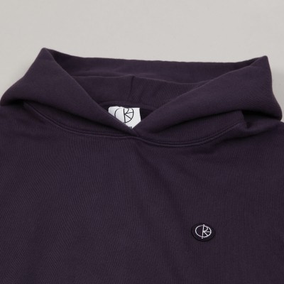 Polar Skate Co. sweatshirt called Patch Hoodie in dark purple. On the left side of the chest there is a small discreet Polar logo patch. 100% cotton, 560 g, higher weight of the material, pleasant brushed fabric on the inside. WIDE FIT (i.e. it is looser and larger than standard sizes.. we recommend moving one size down if you plan to wear the sweatshirt, more on the body for everyday wear.)