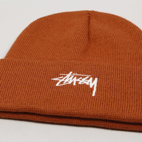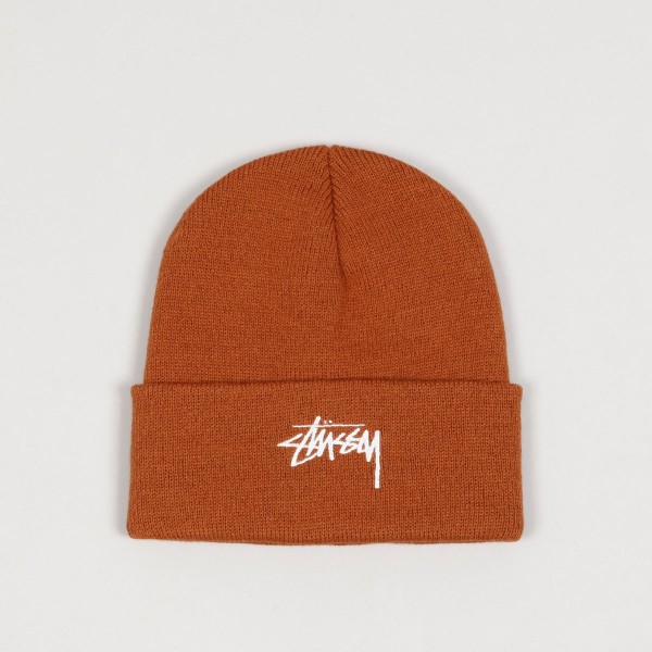 Stussy stock cuff beanie in rusty design with contrasting white Stussy logo embroidery. Material 100% acrylic.
