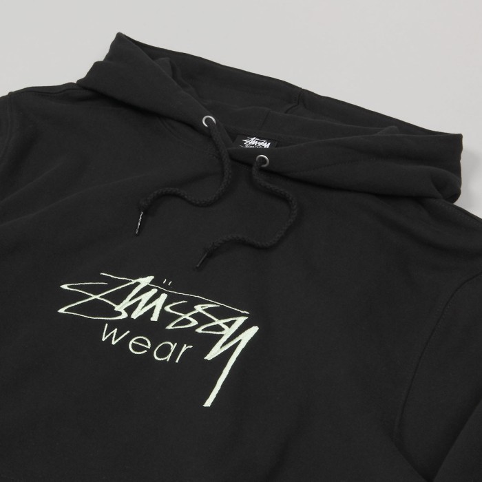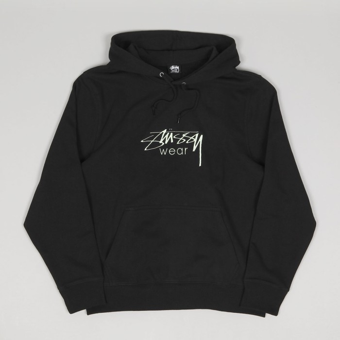 The Stussy sweatshirt , model called Wear Applique Hood in black, has a large Stussy logo embroidered on the chest with the inscription Wear, a removable hood with drawstrings in the same color and a large hand pocket on the front. The material is 80% cotton and 20% poly fleece.