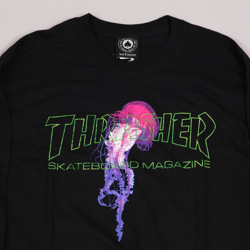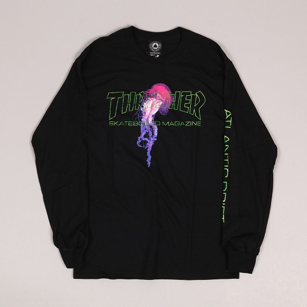 Long sleeve t-shirt from the limited collection of Thrasher Magazine x Atlantic Drift in classic black. Material 100% cotton. Skatemag print of the Thrasher Magazine logo on the chest with a jellyfish and the Atlantic Drift inscription on the left sleeve.
