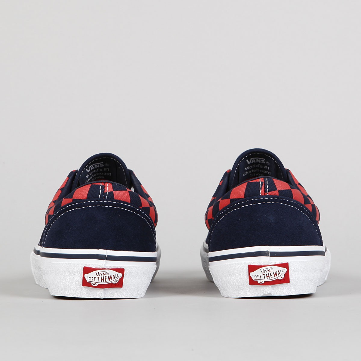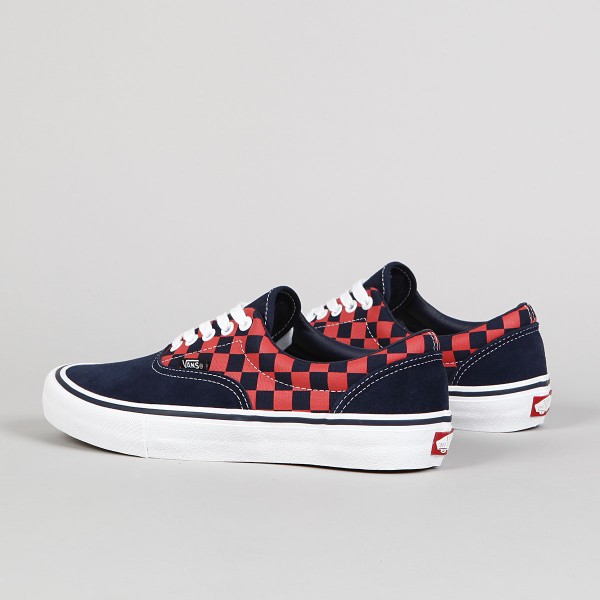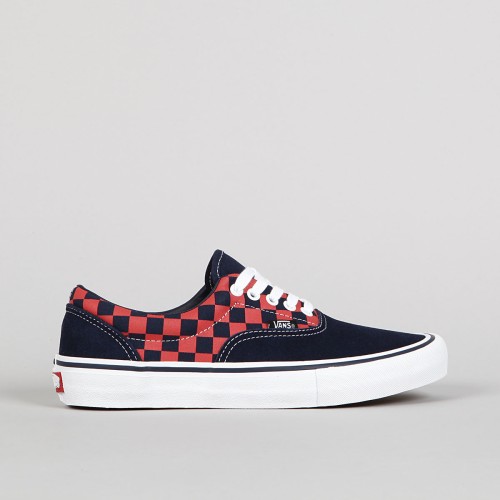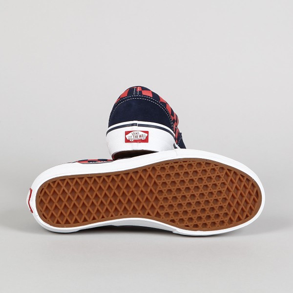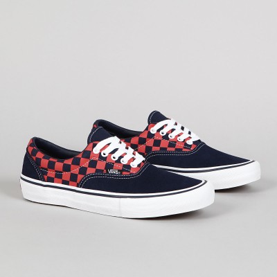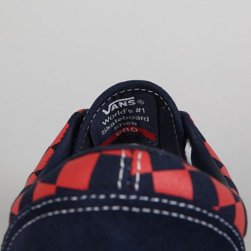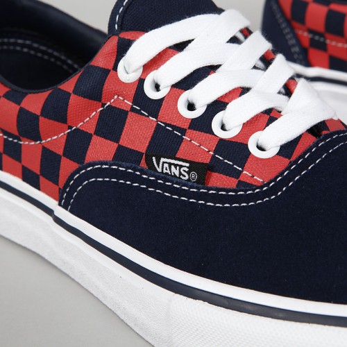 Vans shoes , Era model in an improved version of the Skate Pro in a blue-orange checkered design. The upper is a combination of suede and reinforced canvas. Metal eyelets, leather interior. A discreet Vans flag sewn on the side and the iconic "Off The Wall" logo on the heel. Comfortable volcanic sole with a classic waffle pattern , very comfortable, anatomically shaped PopCush insole for shock absorption and a durable Duracap layer with a reinforced toe . Vans has been a classic since 1966.
