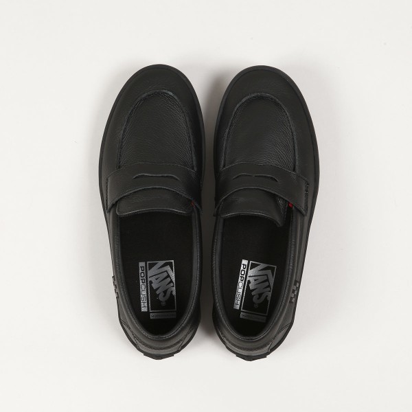 Vans shoes , Skate Loafer model in an improved version of the Skate Classic. The silhouette design resembles moccasins. The upper is made of smooth leather. The inner lining is made of smooth leather, very comfortable, anatomically shaped PopCush insole for shock absorption. Inverted seam on the toe and stylish strap over the instep. On the side, a discreet small flag with the Vans logo. Vulcan sole with a classic waffle pattern and a durable Duracap layer with a reinforced toe. The iconic "off the wall" logo on the heel.