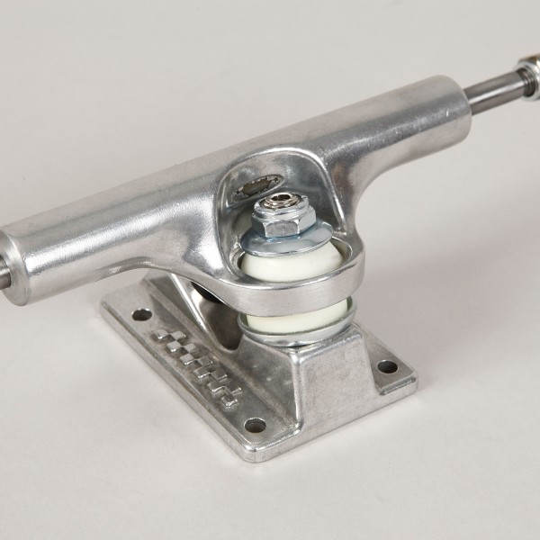 ACE AF1 Low Polished skateboard trucks in a classic silver finish. They have a completely reinforced construction including a baseplate, a nut with patented technology for better thread protection and a hollow kingpin. The size is stamped on the right side of the hanger. The recommended size is engraved on the axle for choosing the ideal width for the board. Each truck comes with a special red nut - a tap, which is universal for any skate tool. Size 44 is ideal for 8.25" - 8.5" boards.