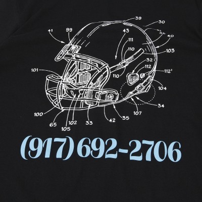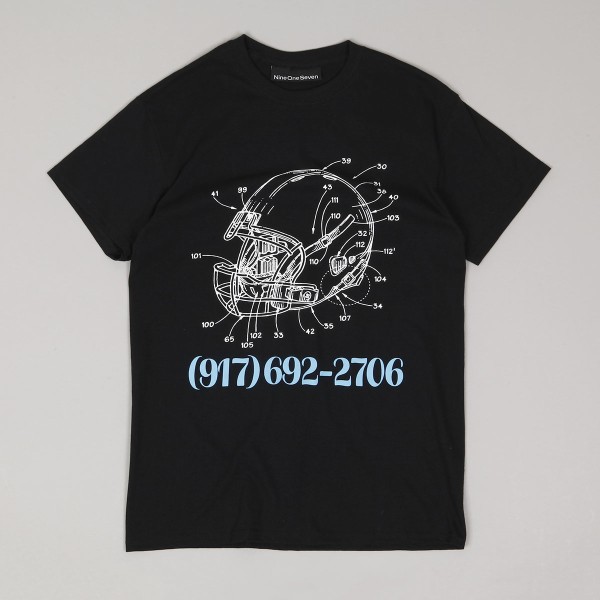 Call Me 917 Football Tee in black with a football helmet graphic and a 917 phone number. Made of 100% cotton. Call Me 917 was founded by designer and skater Alex Olson. He draws inspiration for his collections from music, fashion and photography. Their products are usually only available in selected skate shops.