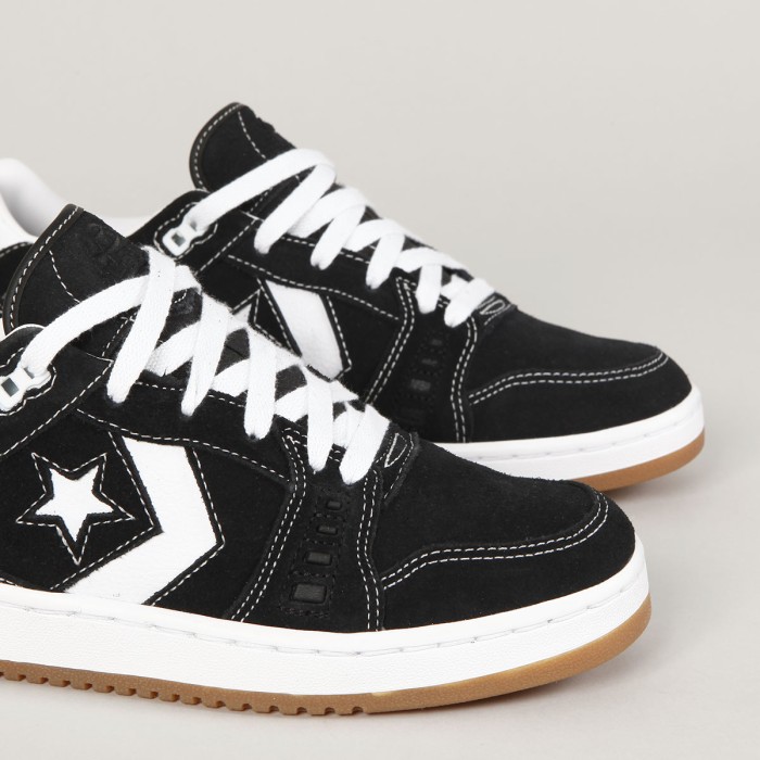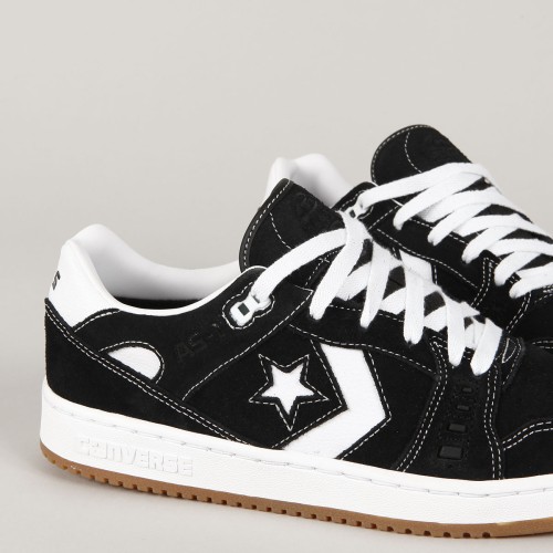 Converse shoes from the CONS skate line. Brand new, innovative AS-1 Pro model designed by Alexis Sablone herself. They combine the retro style of basketball shoes from the 80s with soles from the 90s and the latest technologies. The upper is made of suede with contrasting leather and rubber details, an improved cupsole for better feel on the board and grip. Inside, a soft CX foam insole for shock absorption. CONS inscription embossed on the heel, Alexis Sablone signature on the tongue and ankle and Star Chevron logo on the side of the shoe. Padded hem around the ankle, durable toe cap and quilted sole. 3D Converse inscription on the heel.