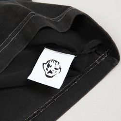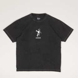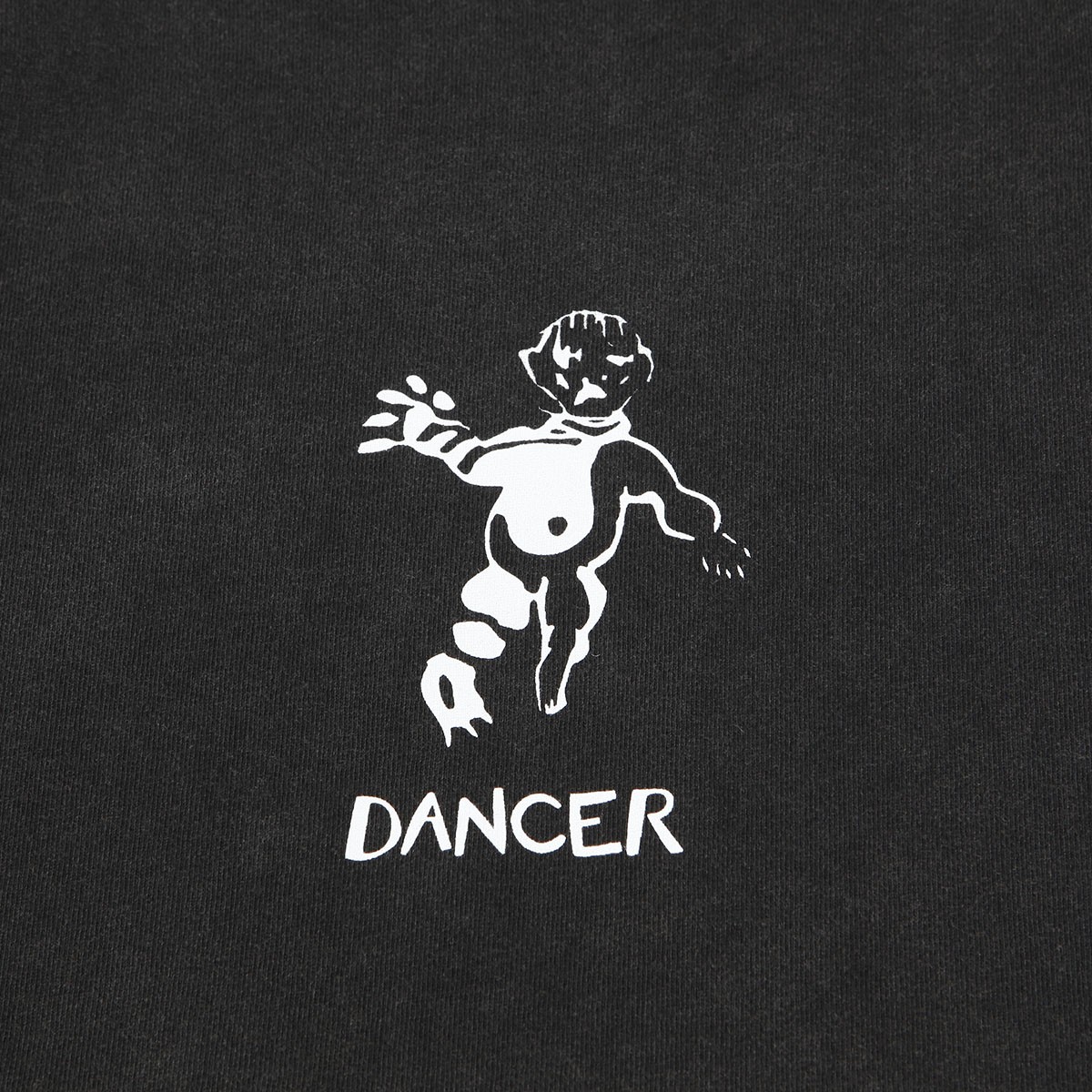 Dancer OG Logo Tee in black with bold white stitching. Short sleeves, ribbed hem and relaxed custom fit. Contrasting graphic of a dancer with Dancer lettering printed on the chest. Made from 100% soft, organic cotton.