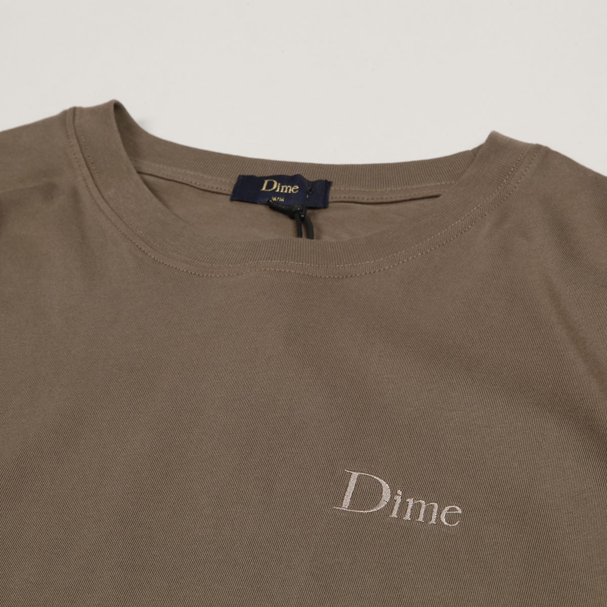 Dime Classic Small Logo Tee in light brown Sepia color. Small contrasting Dime logo embroidered on the left chest. Material 100% cotton.