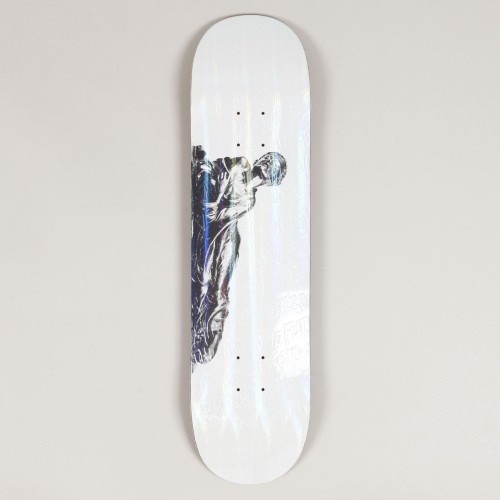 Fucking Awesome skateboard deck by Jason Dill and Anthony Van Engelen. Pro model of FA team rider Gino Iannucci with a statue graphic and full-surface engraved Fucking Awesome logos. The deck is covered with a rainbow foil. The size of the deck is 8.38 inches wide, 31.75 inches long and 14.18 inches has a wheel base. Free grip with each deck. The colored side of the wooden deck may differ from the photo shown .