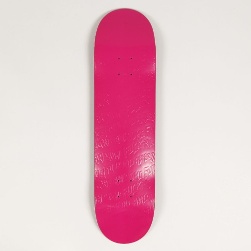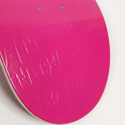 Fucking Awesome skateboard deck by skateboarders Jason Dill and Anthony Van Engelen. Team model Stamp Embossed in pink with engraved Fucking Awesome logo. Deck size is 8.18 inches. Free grip with each deck. The colored side of the wooden deck may differ from the photo shown .