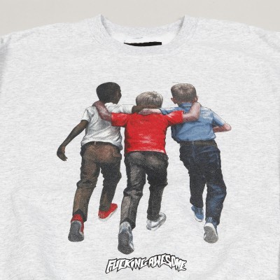 Fucking Awesome sweatshirt from the new collection, created by skateboarders Jason Dill and Anthony Van Engelen. The Kids Are Alright Crewneck model has a print of party friends with the Fucking Awesome logo on the chest. Ribbed, elastic cuffs and waist. Material 100% cotton.