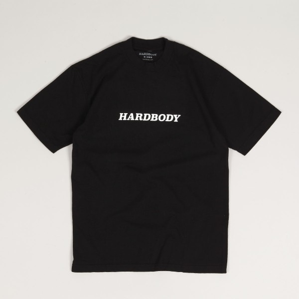 Hardbody T-shirt, model called Logo Tee in black. Contrasting Hardbody logo printed on the chest. The T-shirt has a classic looser cut. Material 100% organic Ring Spun cotton. Made in the USA.