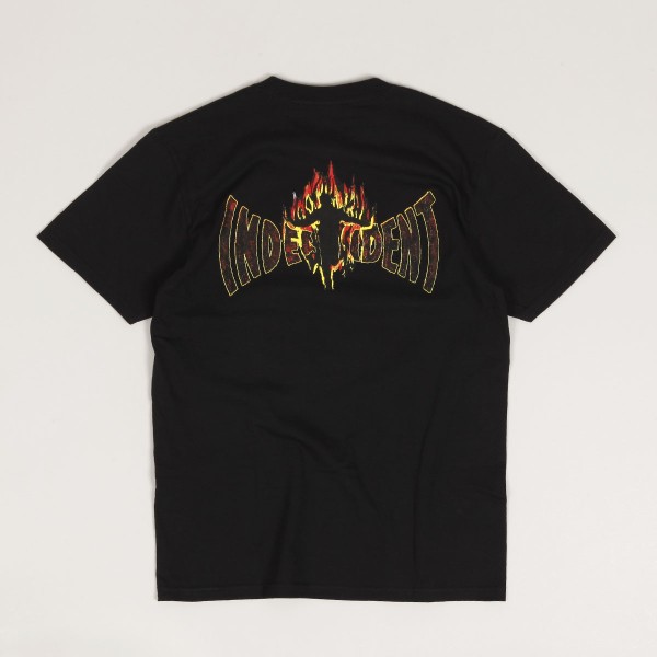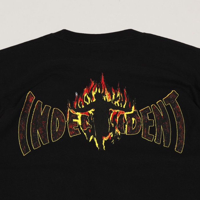 Hockey Skateboards T-shirt from a special collaboration with the Independent brand. The model called Logo Tee in black has a round neckline and short sleeves. On the left chest there is a Hockey inscription and on the back there is a graphic with a burning Independent logo. Made of 100% cotton.