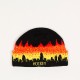 Lights Out Beanie Black from Hockey Skateboards , a brand created by skateboarding legends Jason Dill and Anthony van Engelen. Knitted motif of a burning city with the words Hockey around the perimeter of the cap. Oversized cut with a folded hem. Made of 100% acrylic.