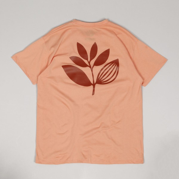 Magenta Skateboards T-shirt , model called Classic Plant Tee in salmon color with short sleeves. Small discreet print of Magenta Skateboards logo on the chest and large print in contrasting red on the back. Made of 100% cotton, 180 gsm.
