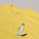 T-shirt from the book of the same name called My First Skateboard, written by professional skater Karl Watson and illustrated by skater Henry Jones. Round neck and short sleeves t-shirt in yellow. Character from the book Jonas printed on the chest, illustration created by skater and illustrator Henry Jones.