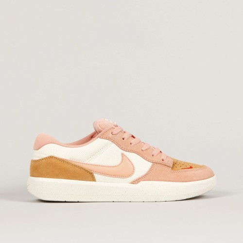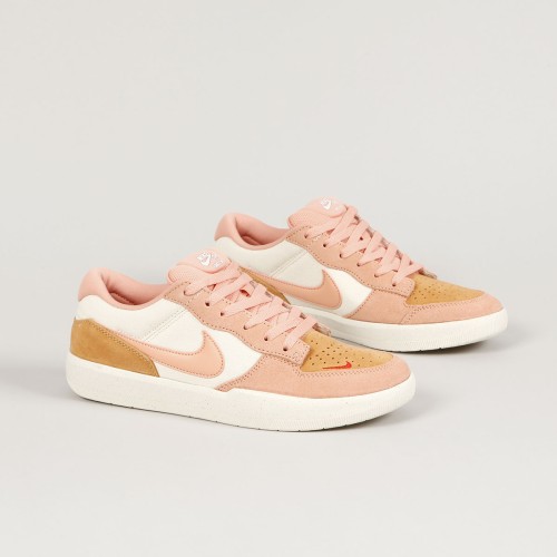 Nike Skateboarding shoes , new Force 58 model in Pale Ivory/ Apricot Agate - Copper Moon colorway. They are inspired by basketball shoes. Upper made of suede and canvas, perforated toe for better breathability, outsole combines the durability of Cupsole and the flexibility of vulcanized construction. Tri-Star pattern disperses pressure when stepped on and thus adheres better to surfaces. Iconic swoosh on the side of the shoe and toe. Nike SB logo embossed on the heel. Nike logo signature on the tongue and insole.