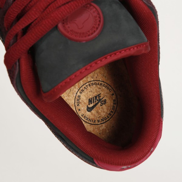 Timing is everything and in the fine art of vinification, age matters. Since 2004, Riot Skateshop in Bordeaux, France has cultivated the connection between old-world craft and skateboarding culture. A proud city whose dedication to authenticity is recognized worldwide, the Nike SB x Riot Dunk Low Pro incorporates regional aesthetics from Bordeaux’s rich winemaking history through custom details and finishes. Using a mahogany suede upper with deep tonal reds and black suede underlays, the Riot Dunk Low’s translucent red-toned sole reveals an homage to the grapes that create Bordeaux’s unmistakable flavor profile. The wine theme continues with gradient cork sockliner artwork, waxed seal tongue logos, and debossed heel branding. As a finishing touch, the Riot Dunk Low offers an ode to their departed shop sentinel, with an illustrated embroidered heel logo.