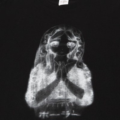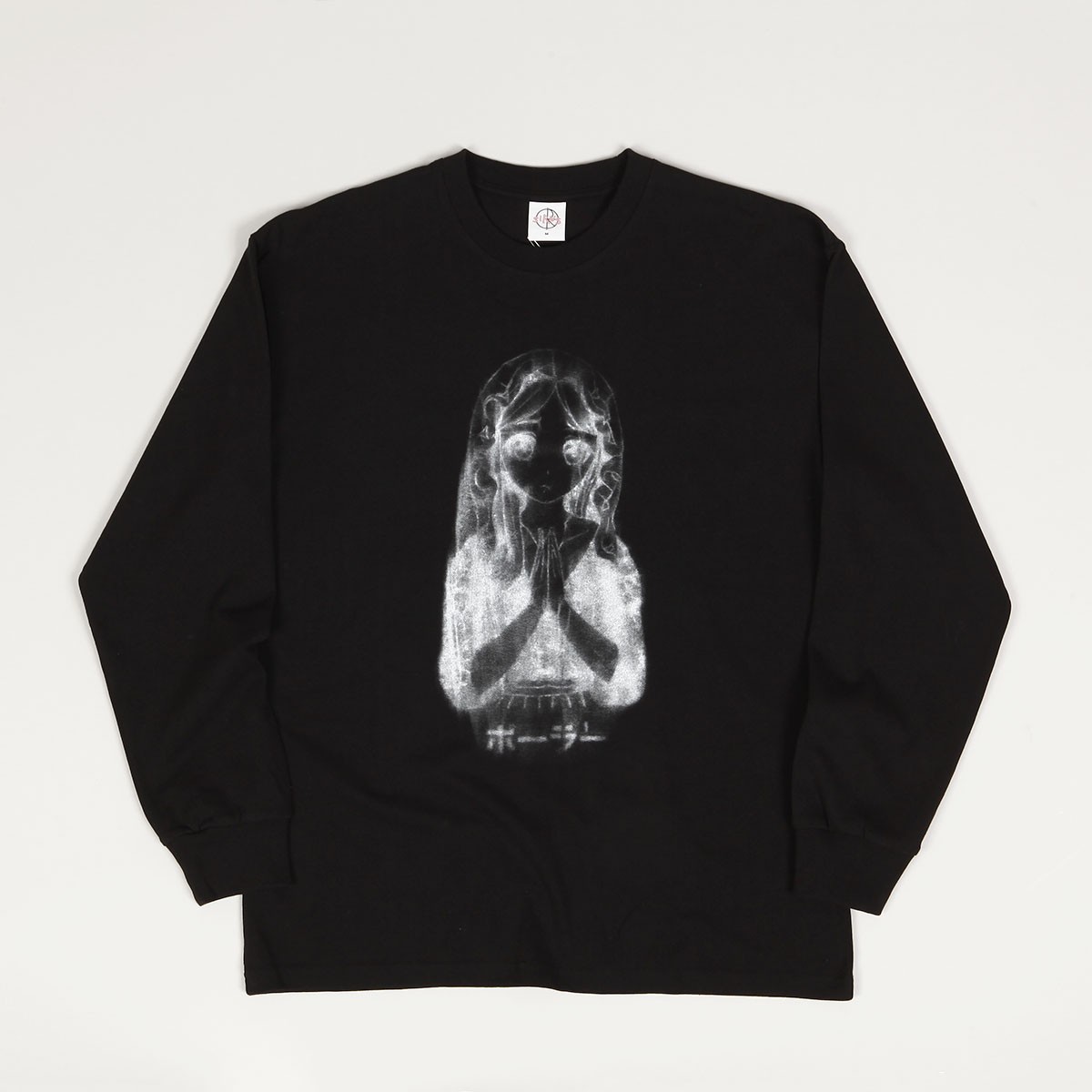 Polar Skate Co. Saint Kawaii LS Tee in black, released to celebrate the release of the skate film Everything is Normal by Sirius F Gahan. Classic Regular Fit cut with slightly dropped shoulders, ribbed collar and long sleeves. On the chest there is a large contrasting print with the spirit of a Japanese anime girl. The motif was created by Sirus F Gahan. Made of 100% cotton, 240 gsm.