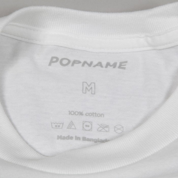 Outlined Logo short-sleeved T-shirt in white. There is a black POPNAME logo print on the chest. The T-shirt is made of very comfortable combed and reinforced 100% cotton with a weight of 203 g/m 2 and double stitching on the hems. The cut is unisex with a regular fit.