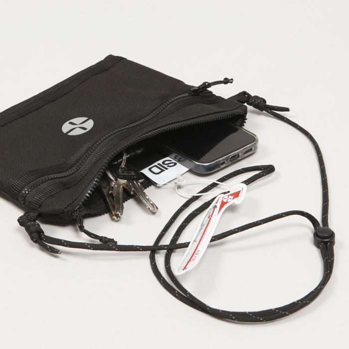 Bag from the Czechoslovak skate brand Sid Limited. Model called Sid Lacebag OG in black. Reflective Sid logo on the front. Adjustable lace for carrying and two zipped pockets. Size 21 x 17 cm. Made of 100% polyamide, the material is waterproof.