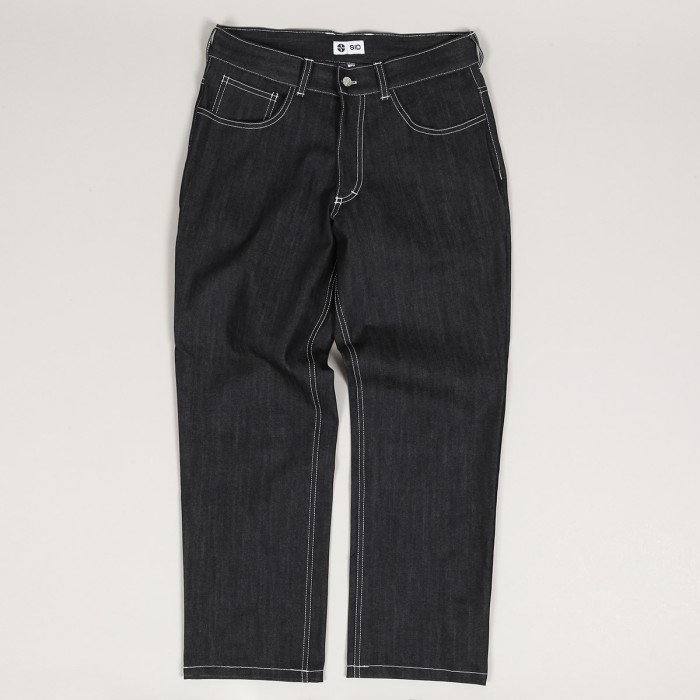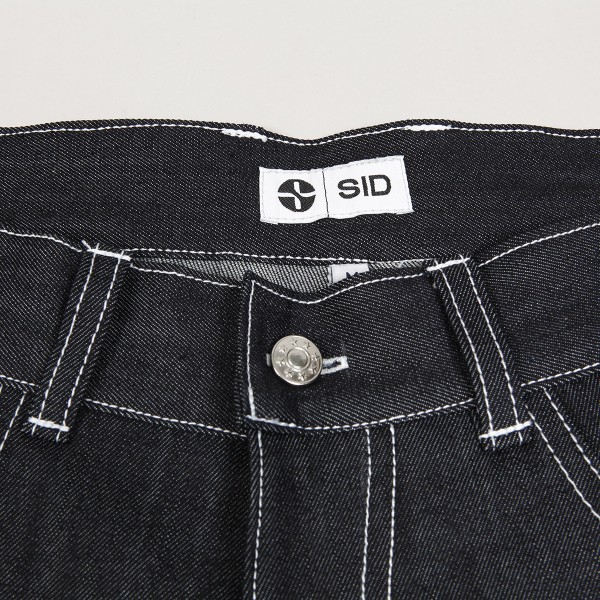 Jeans from the Czechoslovak skate brand SID Limited. Model called W66 Jeans in dark blue. They have a wide Relaxed Fit cut - Bagginess 66/100. Additionally, two pockets on the right leg. Button closure and covered FLY zipper. Rubber patch with SID logo on the back. Made in the Czech Republic from 100% cotton.