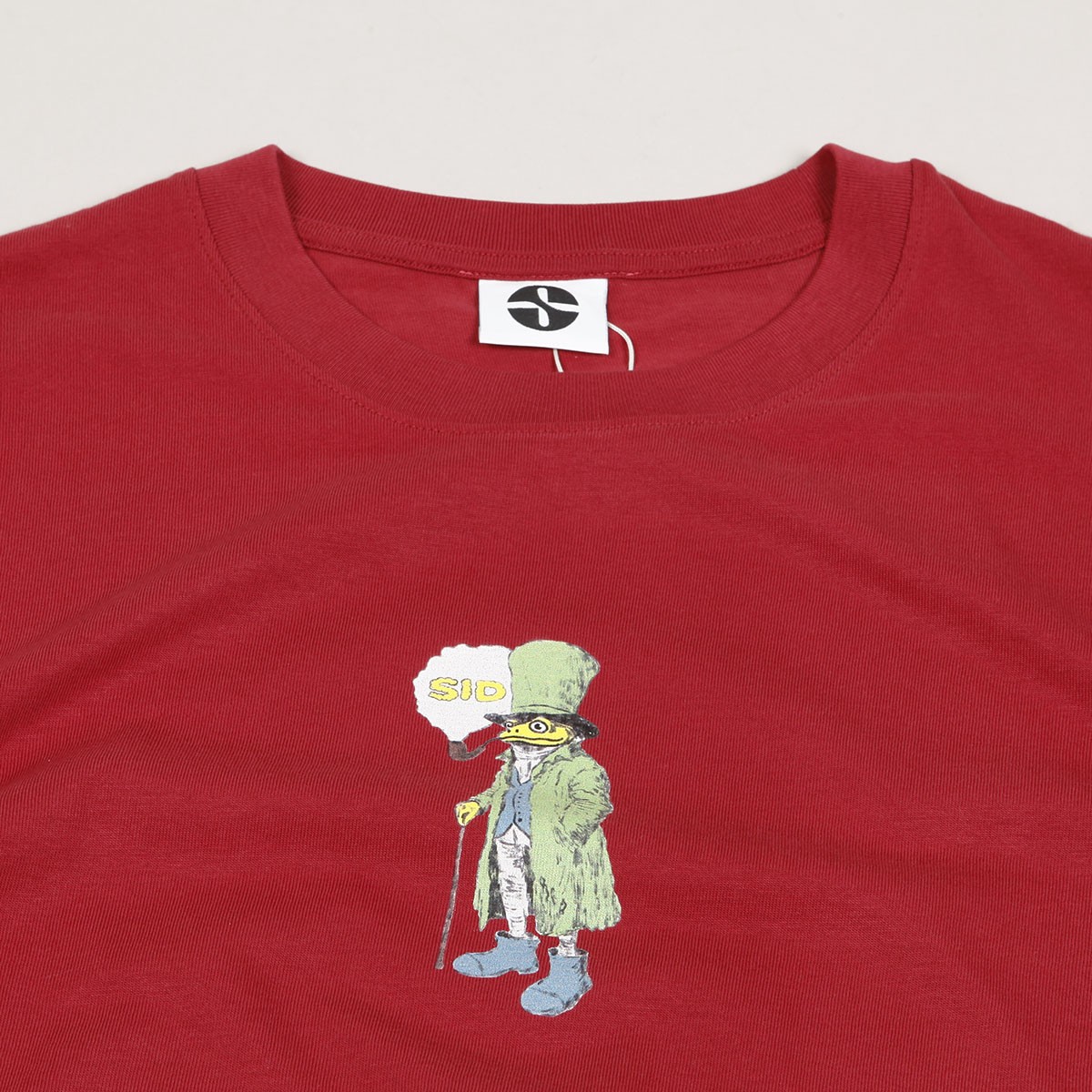 Short-sleeved T-shirt from the Czechoslovak skate brand SID Limited. Model called Wasserman Tee in dark red. Printed graphic of a water buffalo with the inscription SID on the chest. Contrasting SID logo printed on the left sleeve. Regular fit. Made of 100% cotton with a higher grammage, GOTS, Vegan, Fairwear.