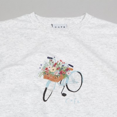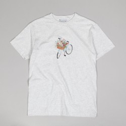 T-shirt from the British brand Skateboard Cafe , which was created together with the skateboard video of the same name in 2008. Model Flower Basket Tee in light gray color, print of a bicycle with a basket of flowers and the inscription Cafe on the chest. Material 100% cotton.