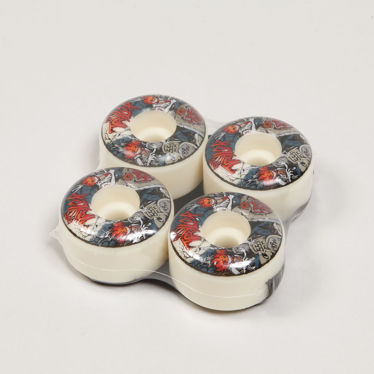 Wheels from the Spitfire Wheels collection. Grant Taylor's model called Formula Four 99 DU Grant Undead Radials is the highest line of wheels from Spitfire. They combine properties for various types of surfaces. The hardness of 99 DURO has a longer life, better handling and increases rebound. Diameter 55.5 mm, width 34.8 mm. Made in USA. In the package there is also a patch with Grant's graphics.