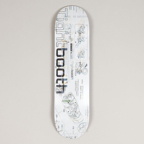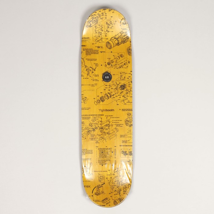 Skateboard from the Japanese brand Tightbooth Skateboards, founded in 2005 by Shinpei Ueno. Model called Analyze 1 Deck in size 8.25 inches. Double-sided graphics of a drawing of the legendary VX1000 camera with the inscription Tightbooth. Free grip with each board.
