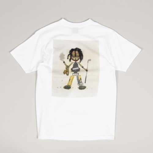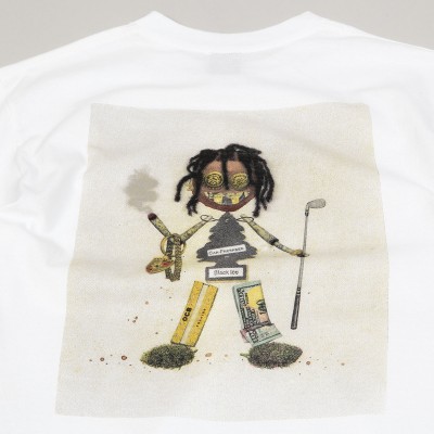 Violet Skateboards Kader Sylla Trash Doll Tee in white. Comfortable fit with longer sleeves and a round, ribbed collar. On the left chest there is a small car tree with the inscription It's Violet and on the back there is a collage print with the Kader character. The graphic was created by Aurel Schmidt. Printed in the USA. Made of 100% cotton.