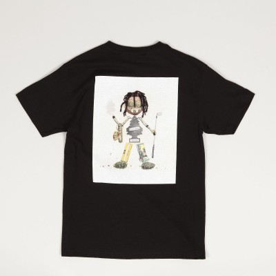Violet Skateboards Kader Sylla Trash Doll Tee in black. Comfortable fit with longer sleeves and a round, ribbed collar. On the left chest there is a small car tree with the inscription It's Violet and on the back there is a collage print with the Kader character. The graphic was created by Aurel Schmidt. Printed in the USA. Made of 100% cotton.